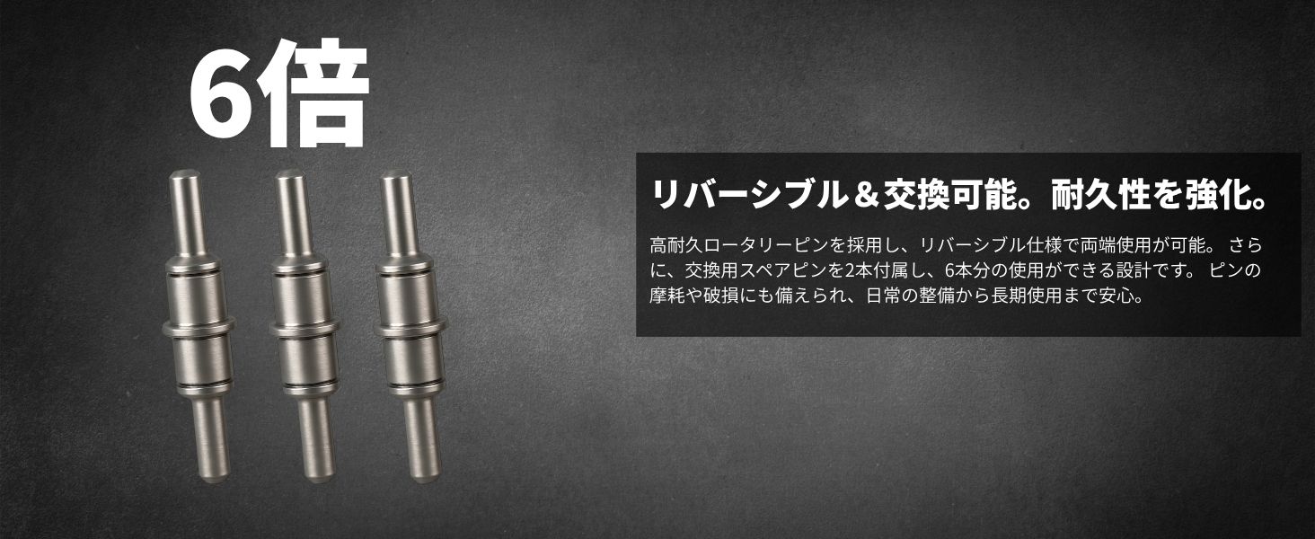 ・圧入式ロータリーピン採用で耐久性に優れ、繰り返し使用も安心